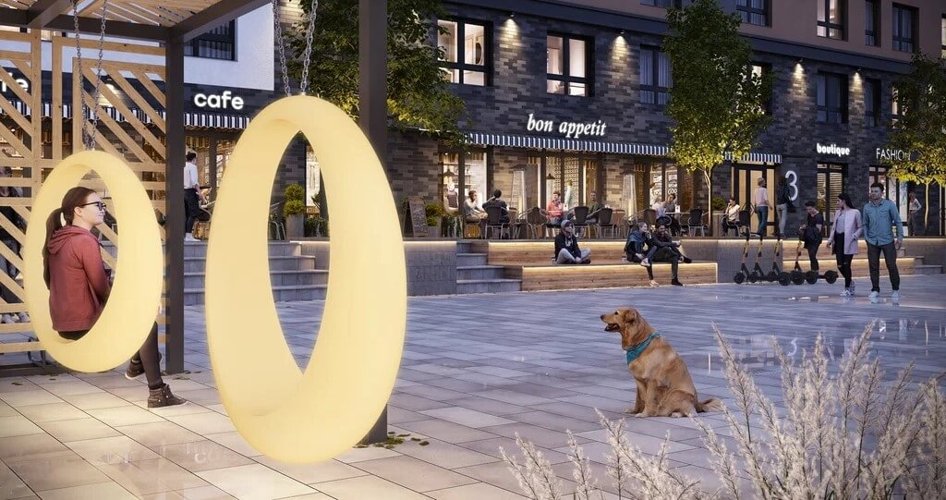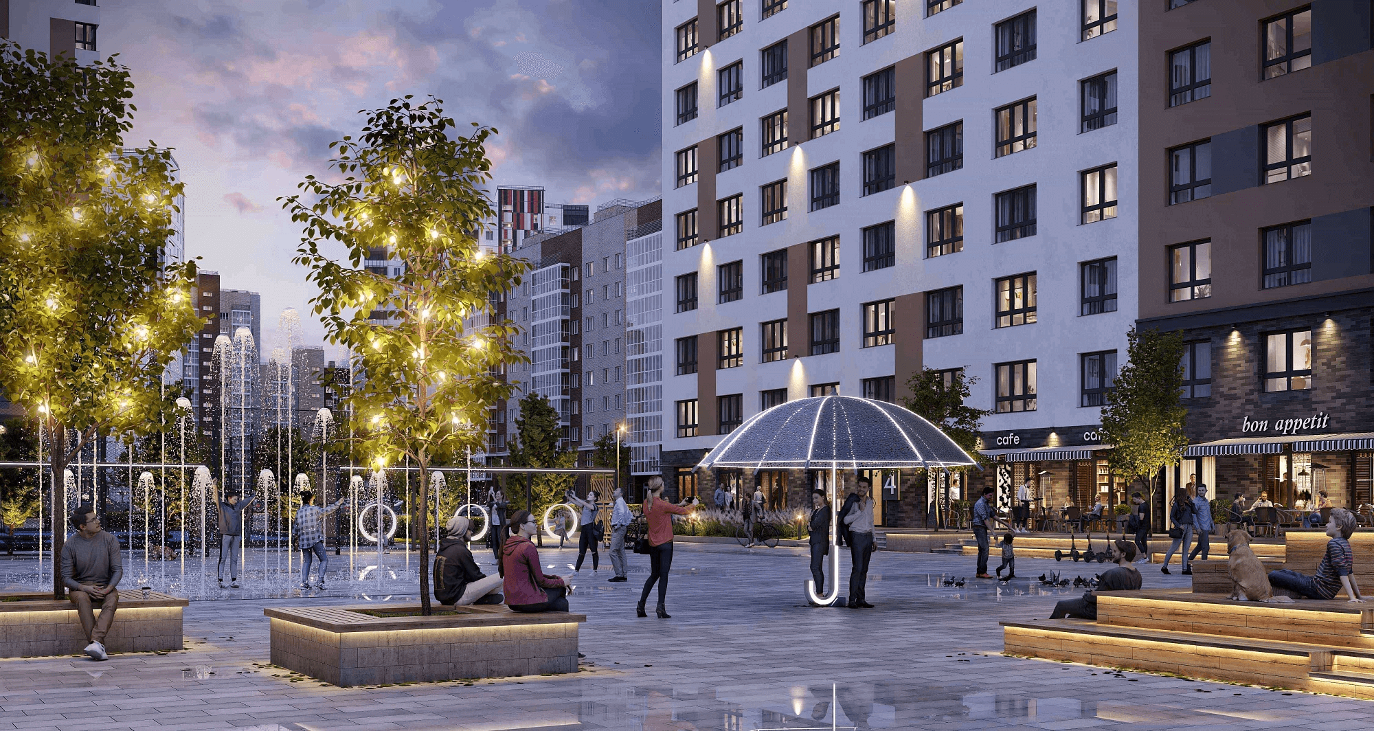 Бульвар «Перемен» с фонтаном и фотозоной — это главное место для отдыха и общения. На прогулочном бульваре разместились детская зона с многоуровневым мультиплейсом, огороженная спортивная площадка с трибунами, место для проведения мероприятий под открытым небом и зона тихого отдыха. Летом на бульваре будет работать пешеходный фонтан, а зимой — каток.