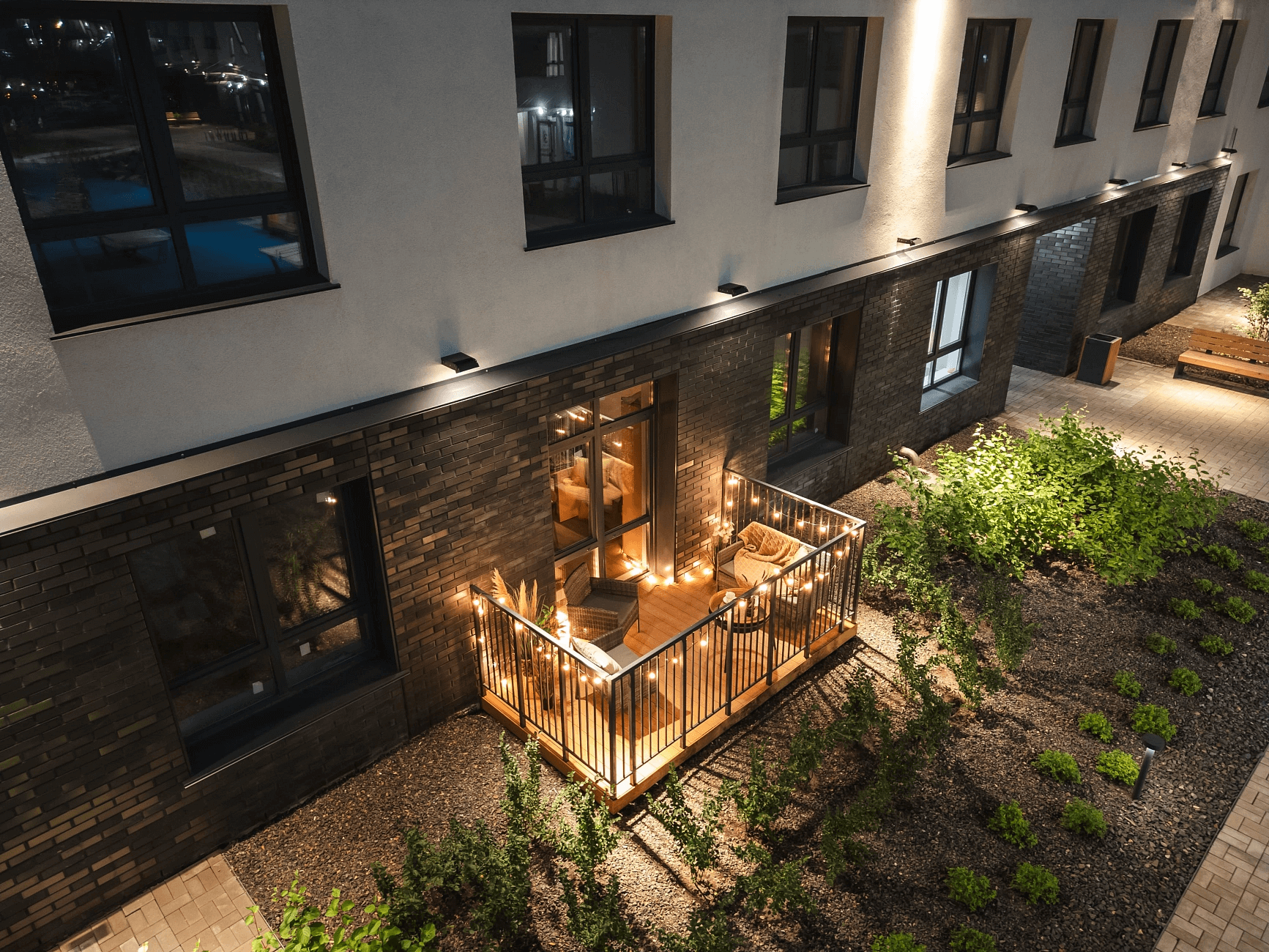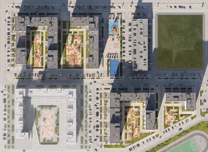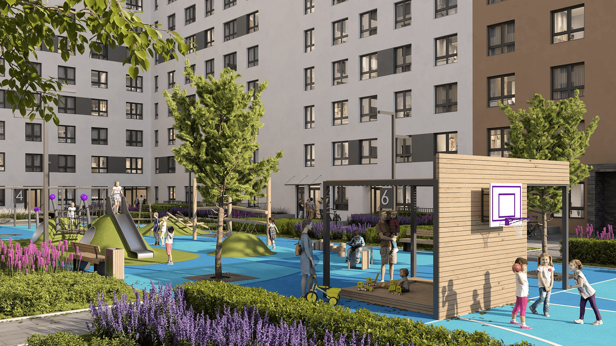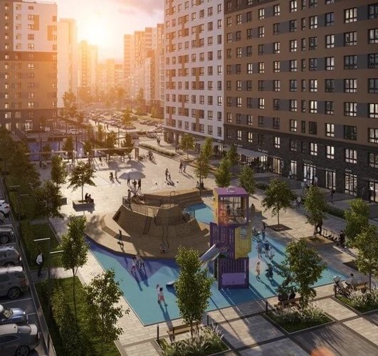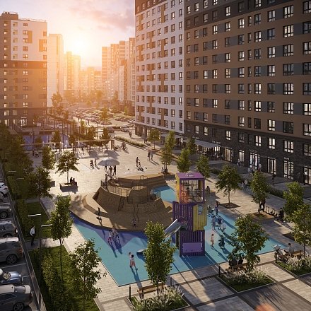 В квартале дома от 10 до 24 этажей. Благодаря разной высоте во дворе и в квартирах всегда много солнца