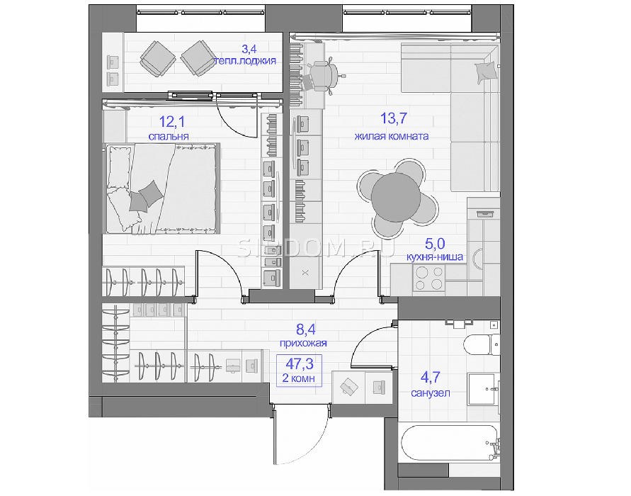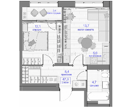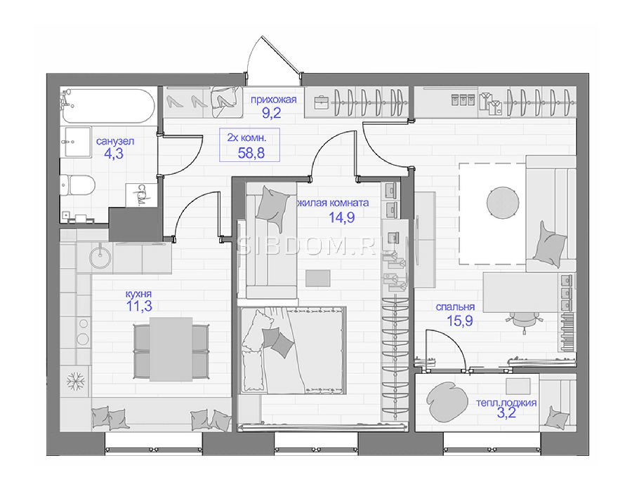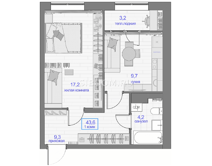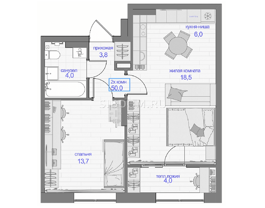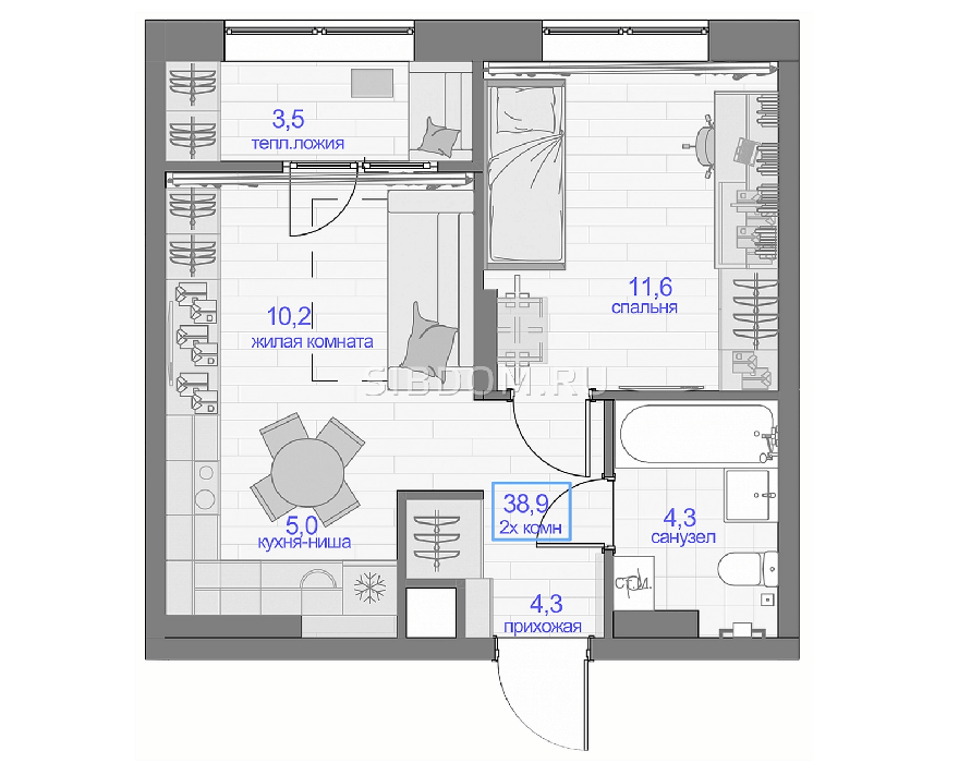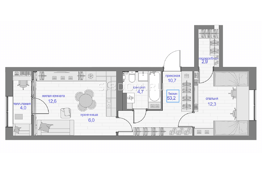 Готовая чистовая отделка, выполненная в нейтральных тонах, включает: