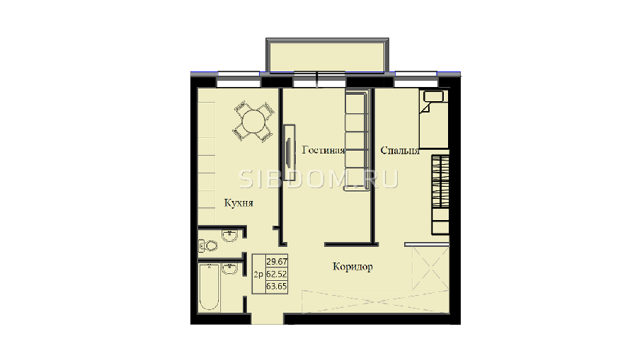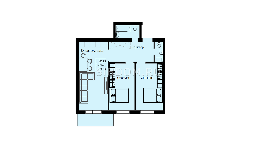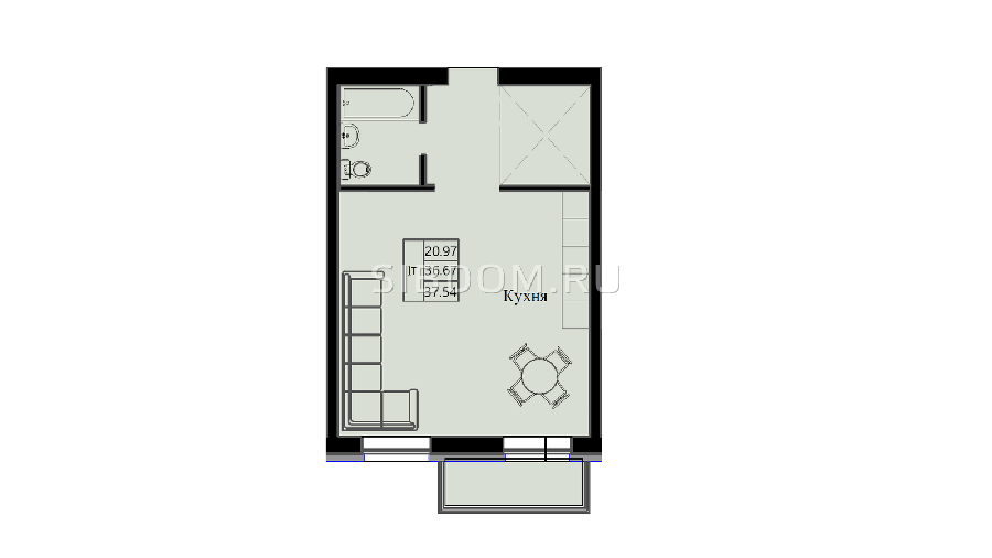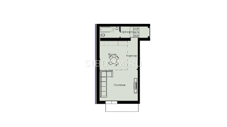 Площадь от 33.74 м2