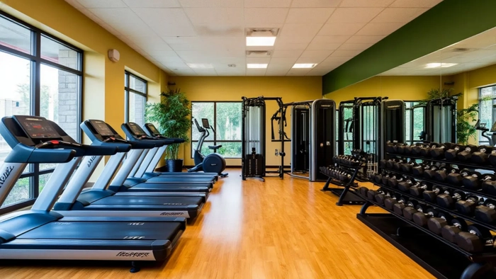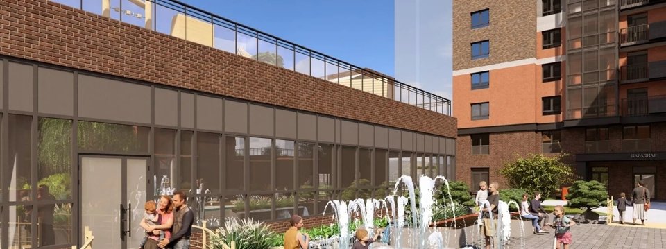 Один из павильонов в составе двора (между корпусами 2 и 3) общей площадью 452 м² предназначен для соседского фитнес-центра, рассчитанный, на одновременное пребывание 40 человек. Это позволит жителям продолжать занятия спортом даже в холодное время года, не покидая собственного двора. Внутри здания расположатся тренажерный зал площадью 167 м², зал для групповых занятий, зона ресепшен. В спортивных залах будет панорамное остекление с видом во двор. Вход в фитнес имеется как с внешней стороны, так и со двора.
