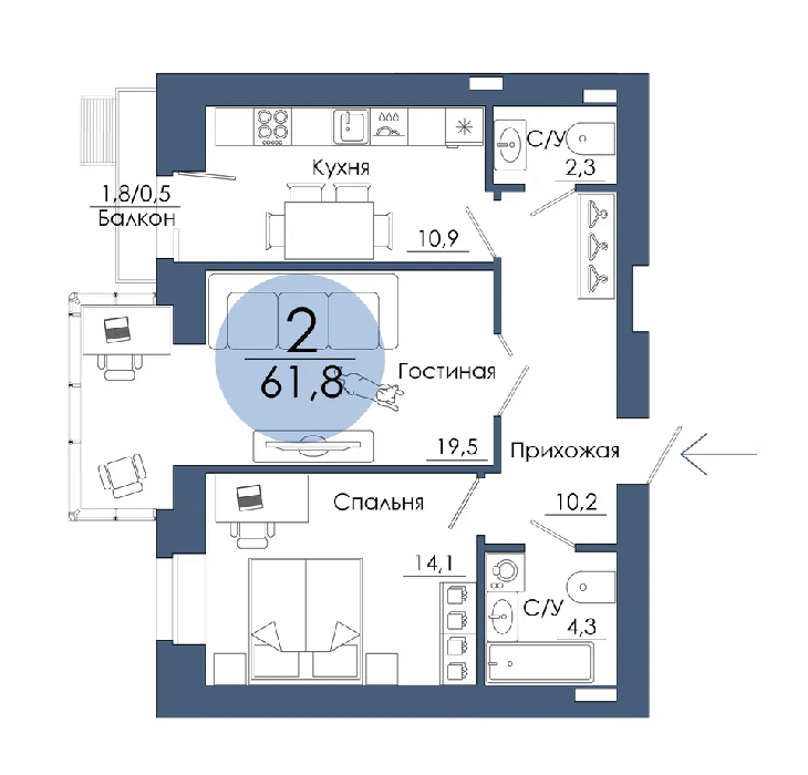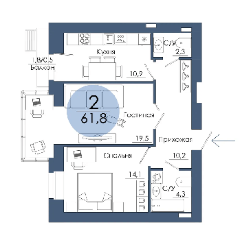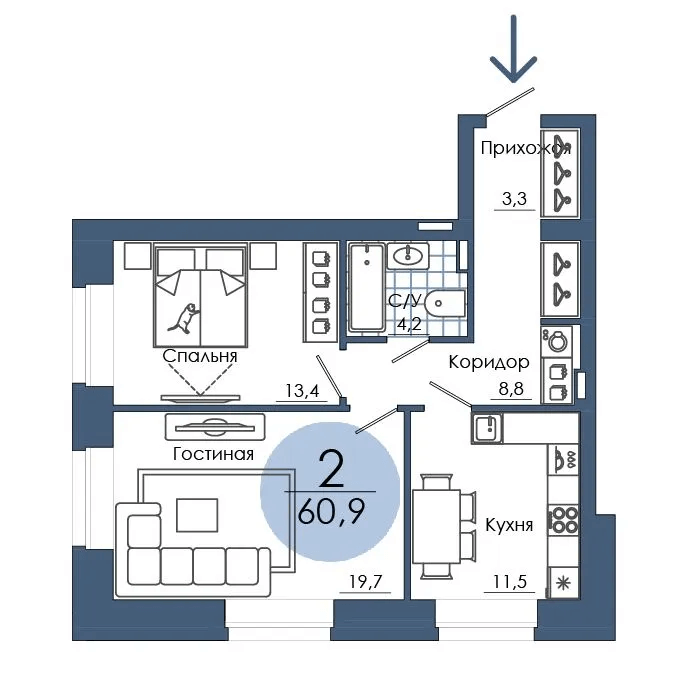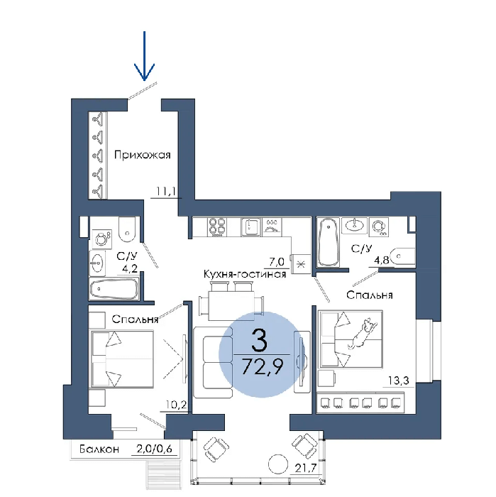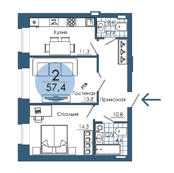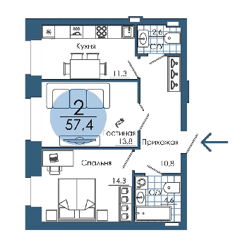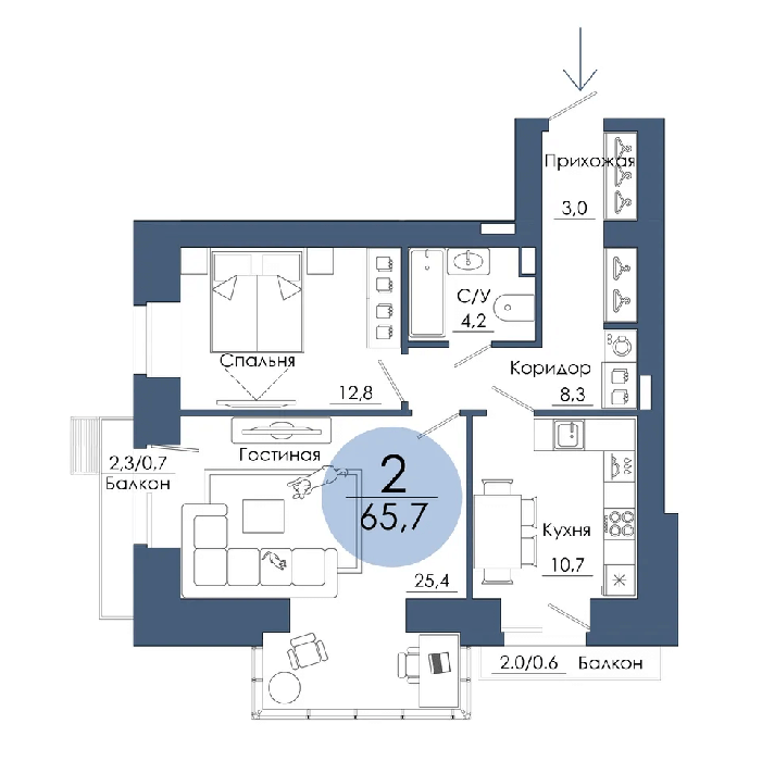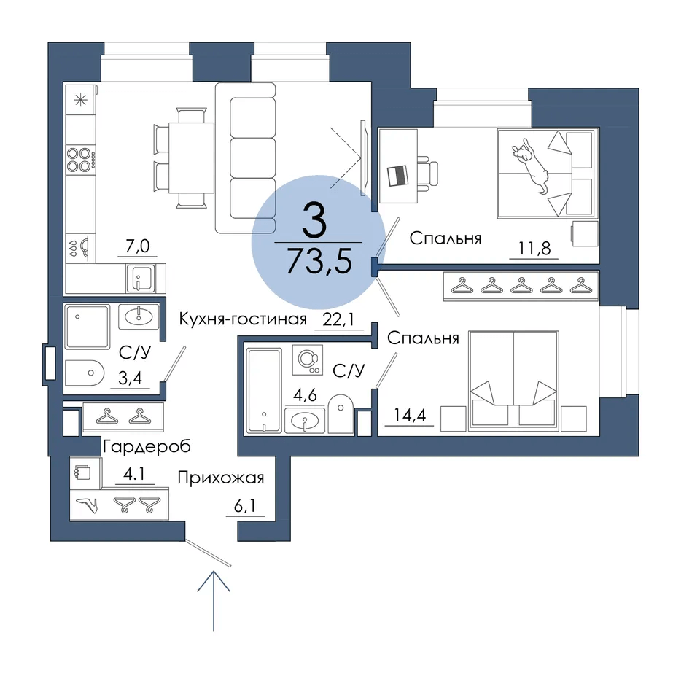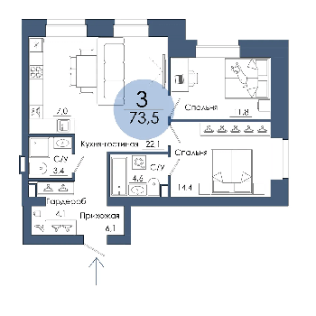 Площадь от 67.4 м2