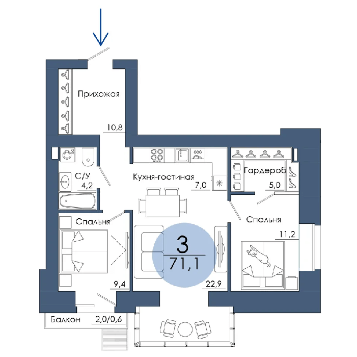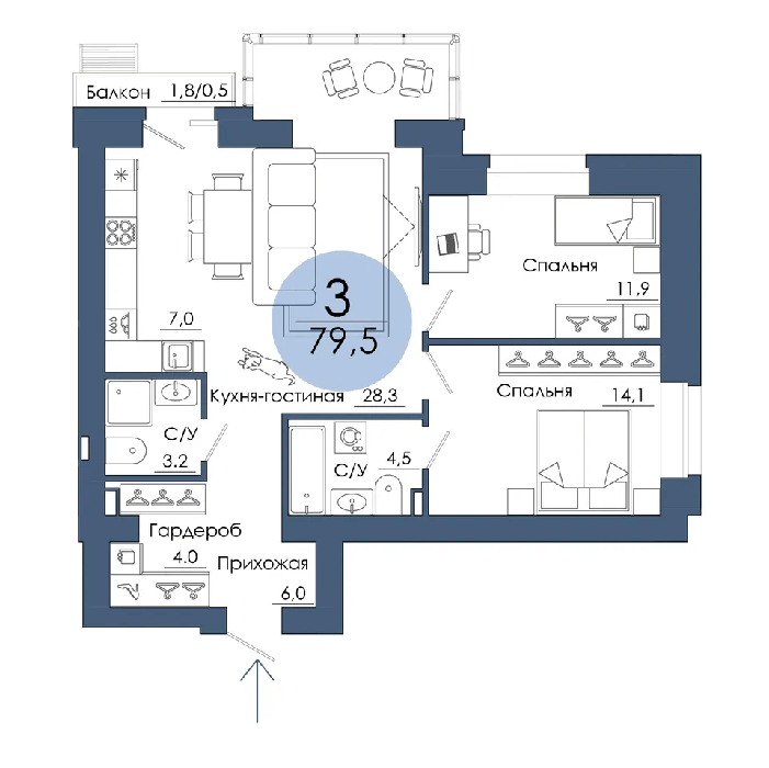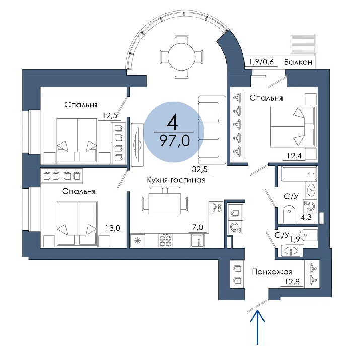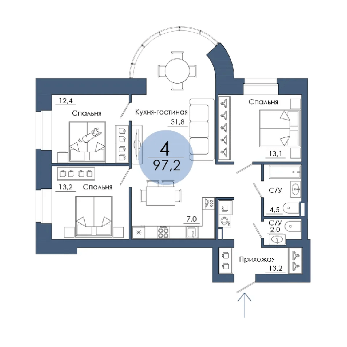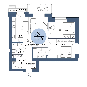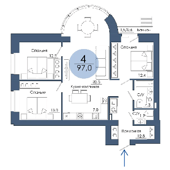 Площадь от 94.8 м2