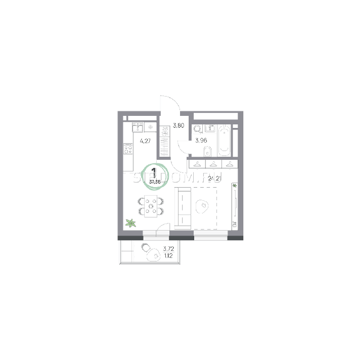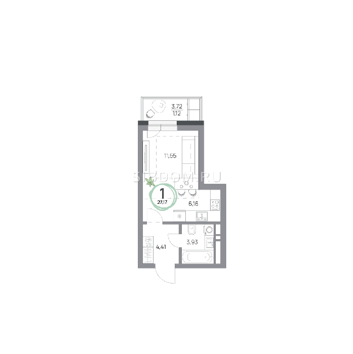 Площадь от 27.2 м2