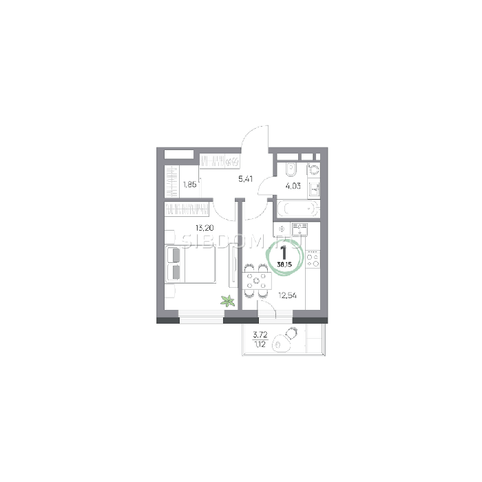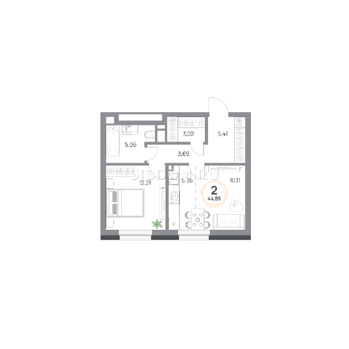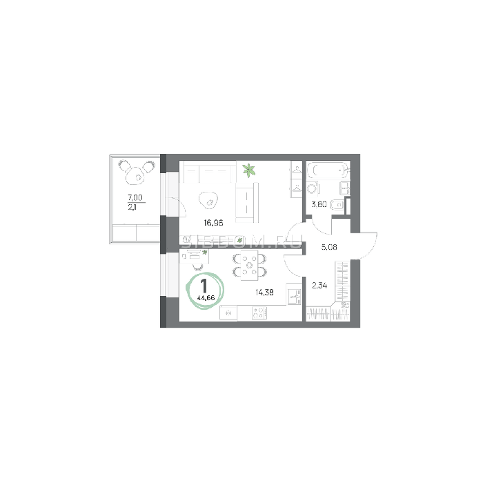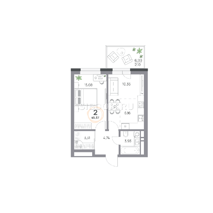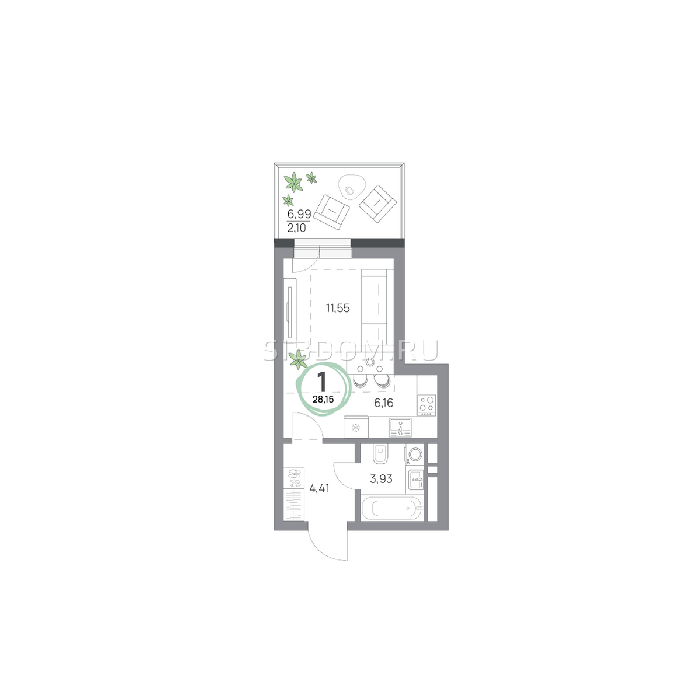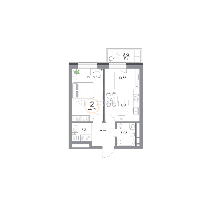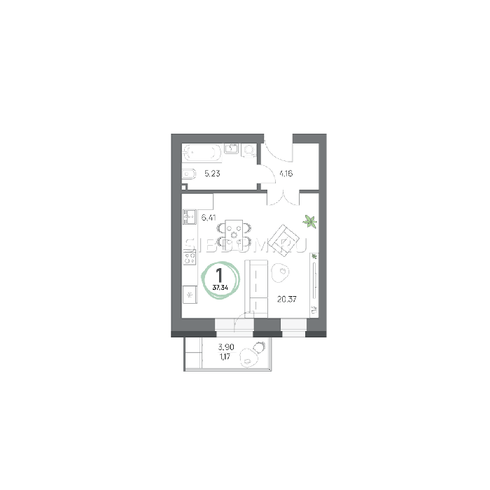 Площадь от 26.7 м2