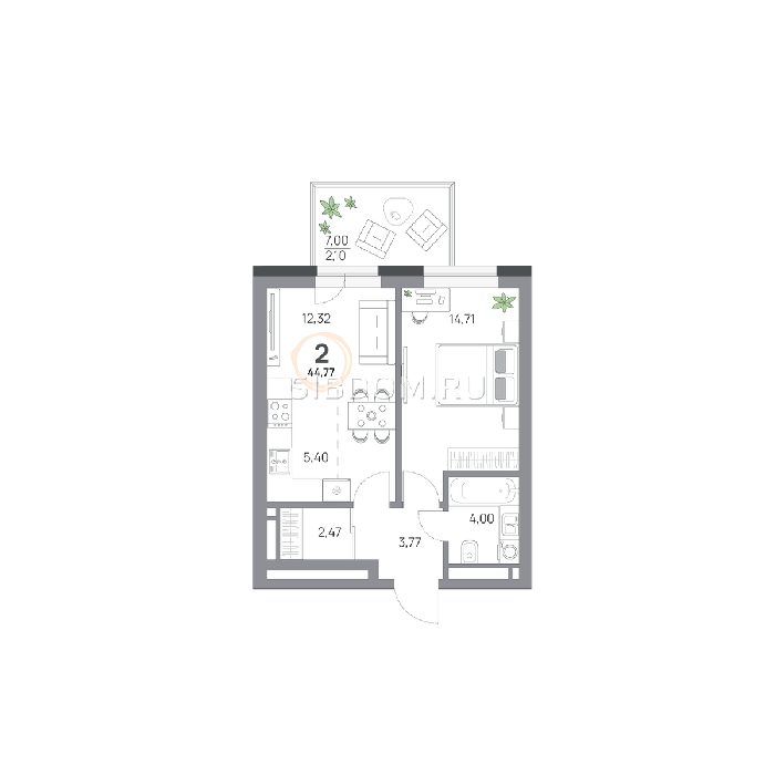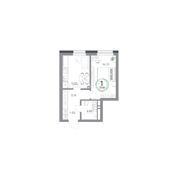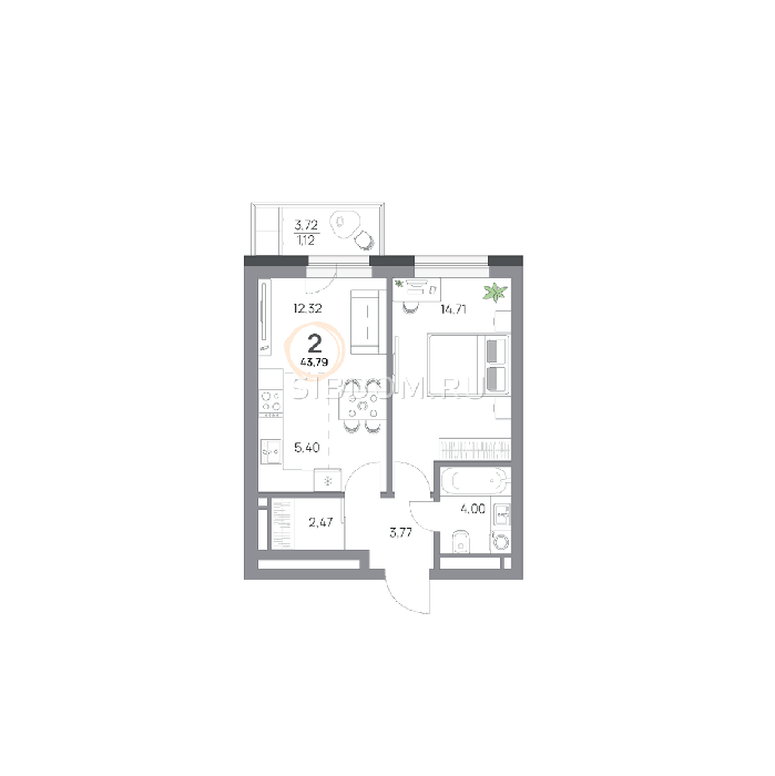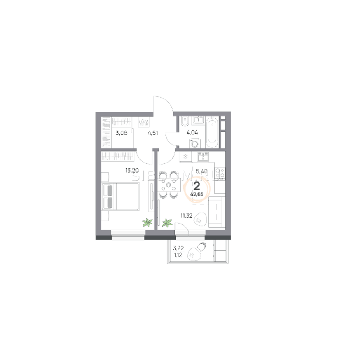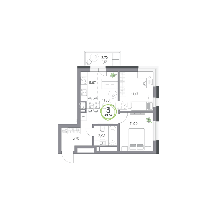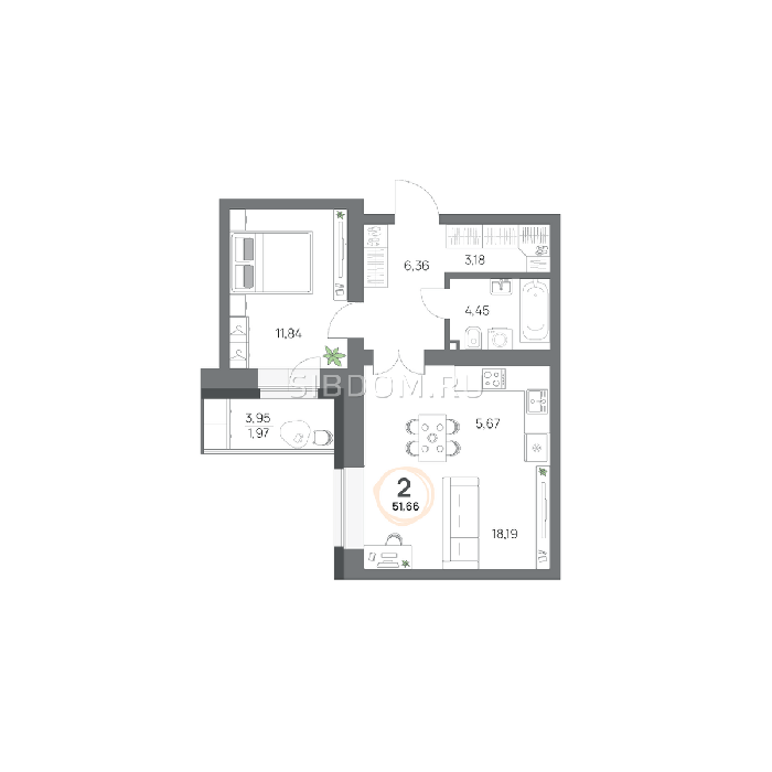 Площадь от 39.5 м2