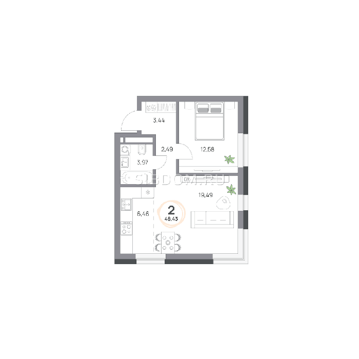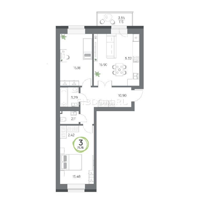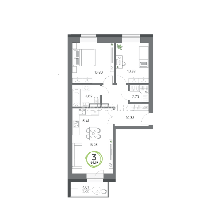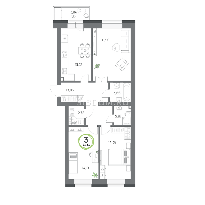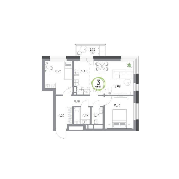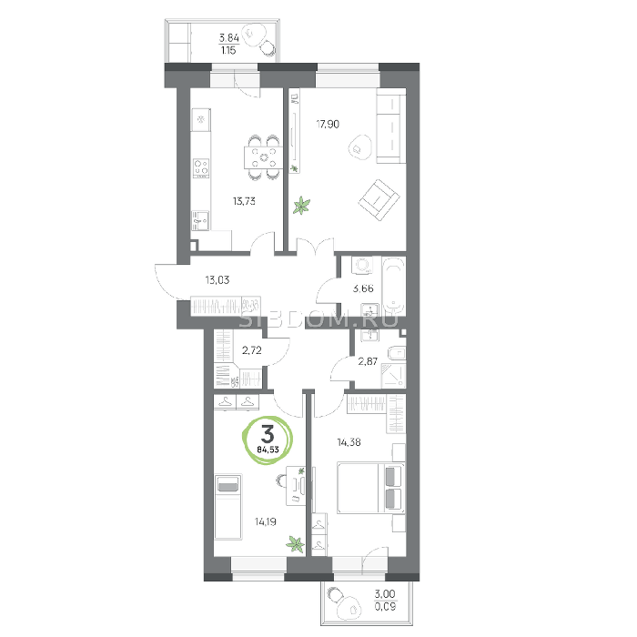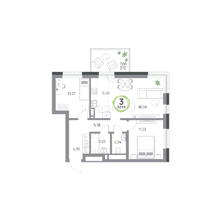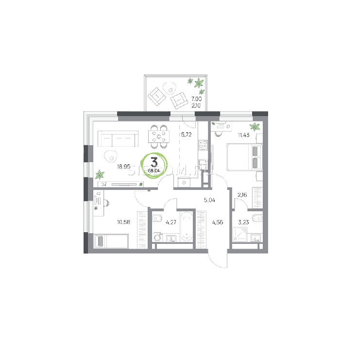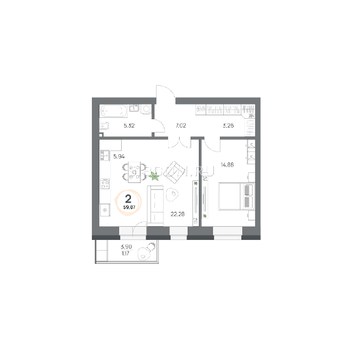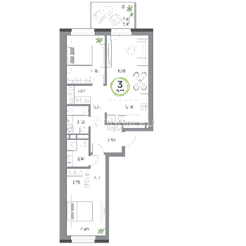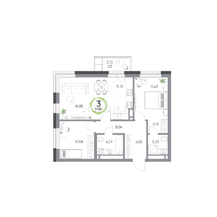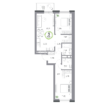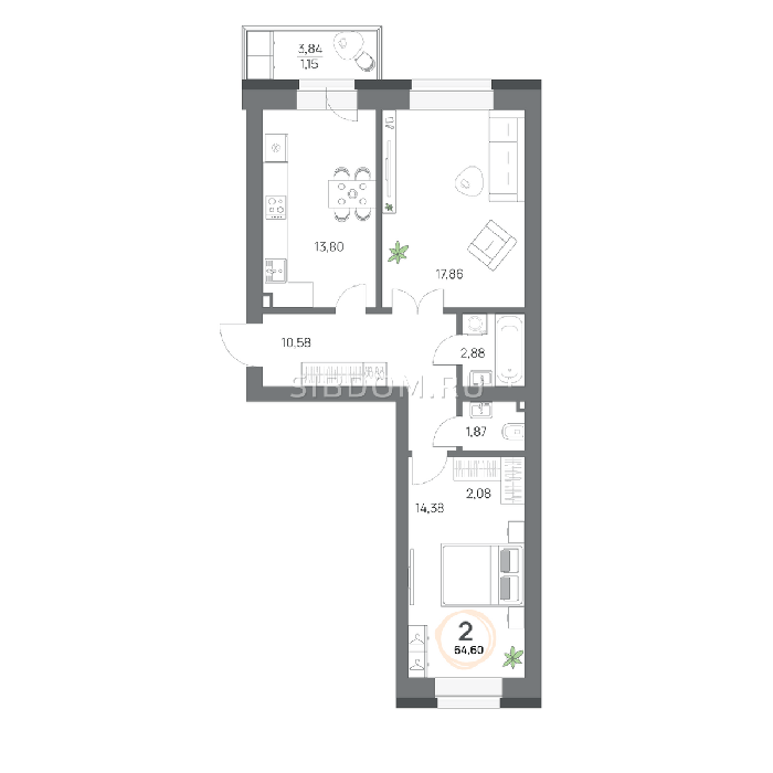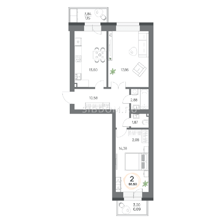 Площадь от 57.8 м2