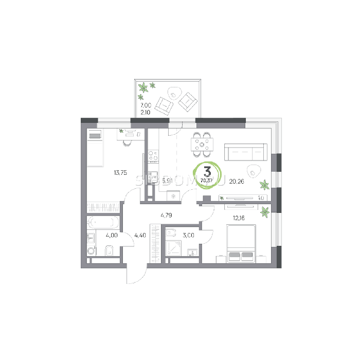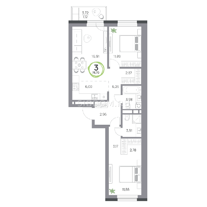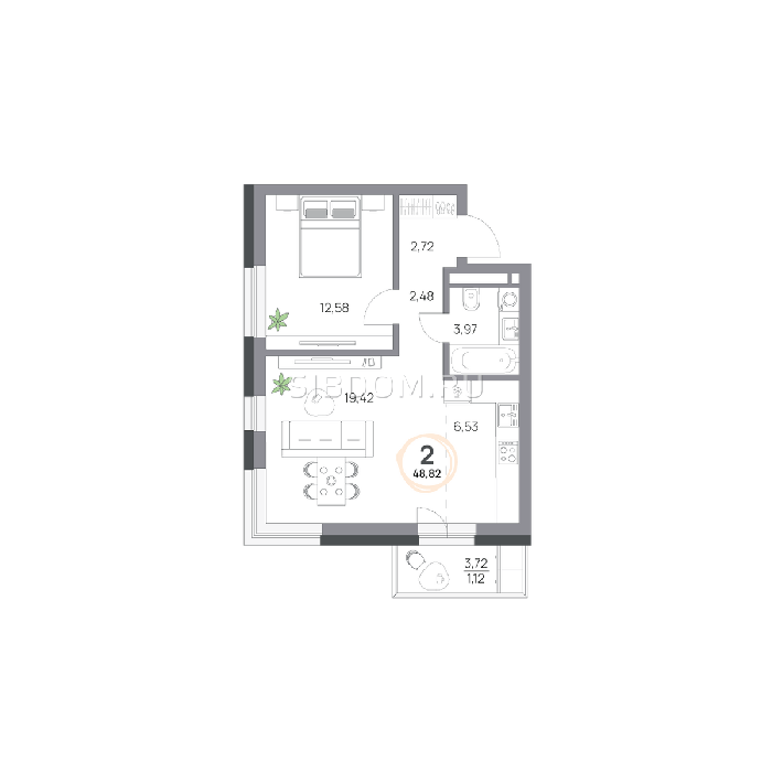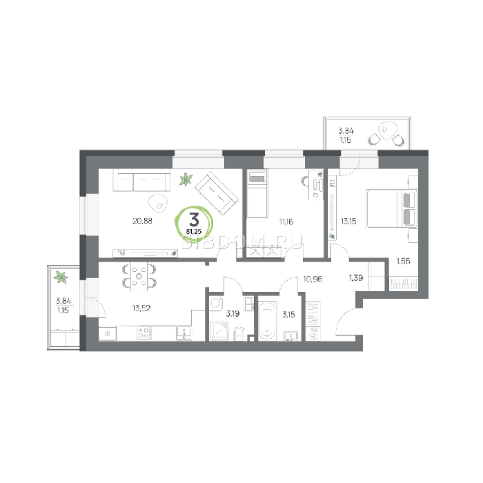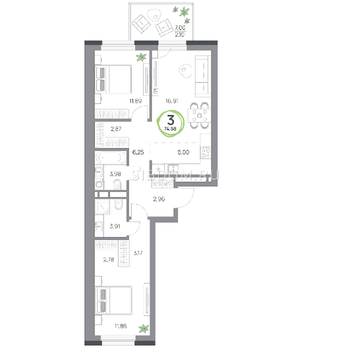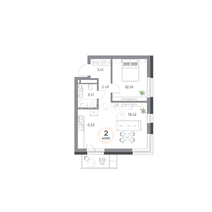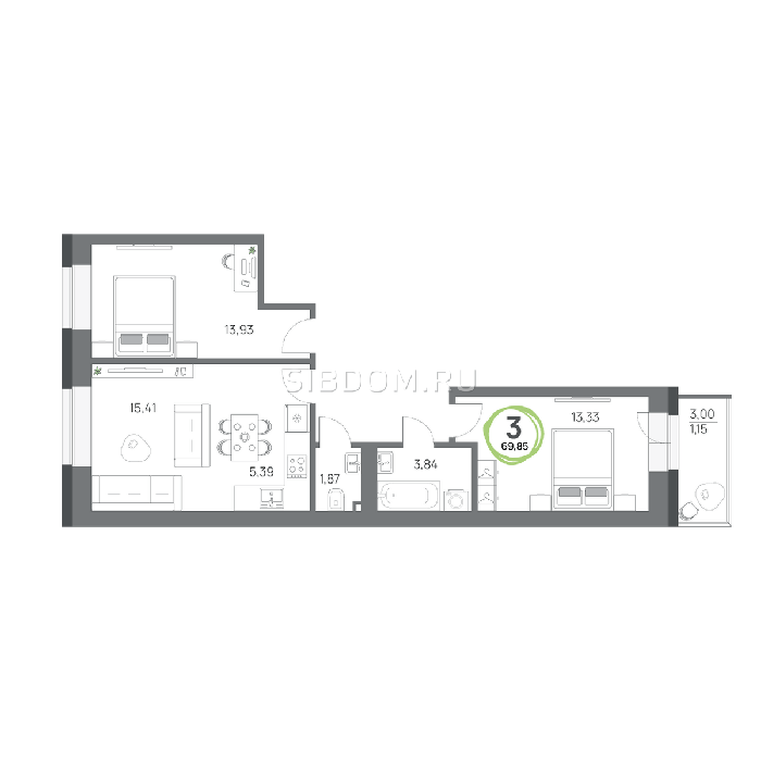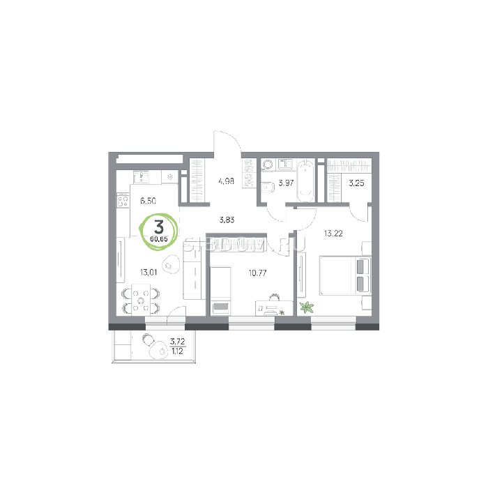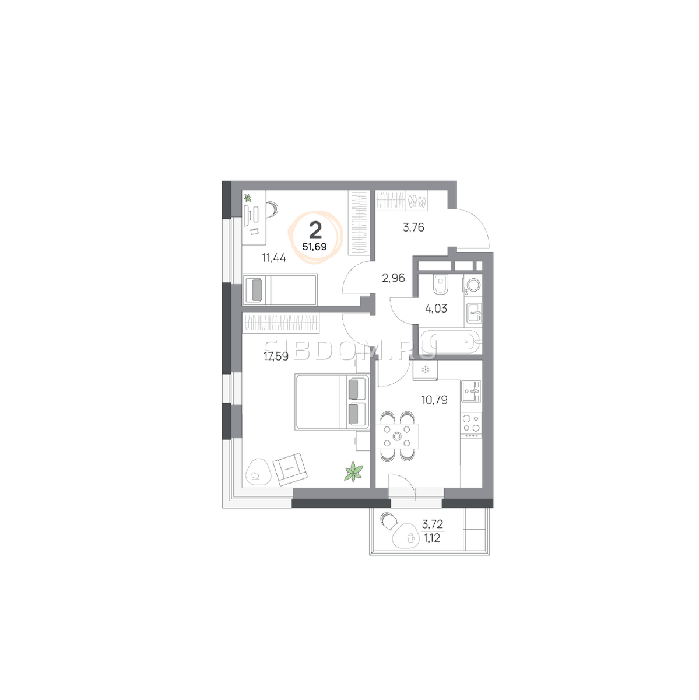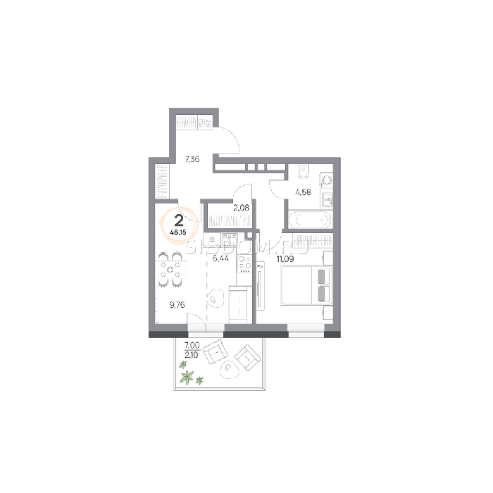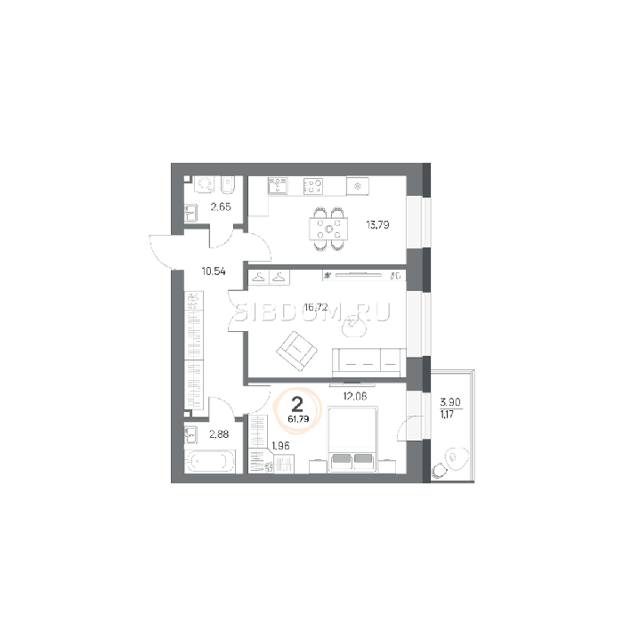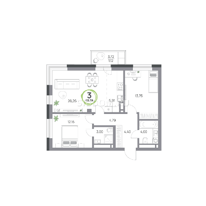 Площадь от 57.8 м2