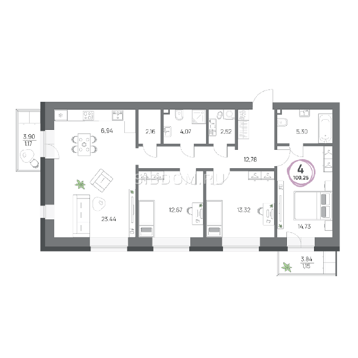 Площадь от 100.3 м2