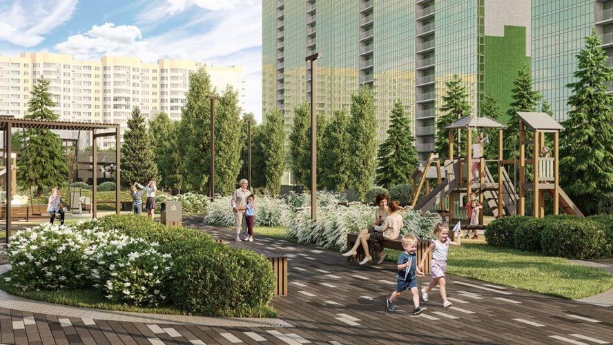 Мы убеждены, что жизненное пространство не ограничено стенами квартиры! В своем масштабном проекте мы продумали каждый сантиметр вашего комфорта: роскошная аллея с ландшафтным дизайном, шезлонгами и зонами отдыха в тени деревьев подарят приятные минуты отдыха от городской суеты каждому жителю. Игровые и спортивные площадки для детей разных возрастов приведут в восторг вашего ребенка.