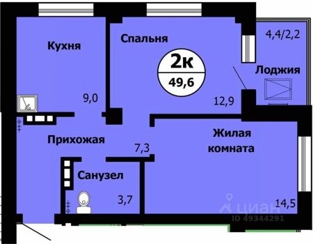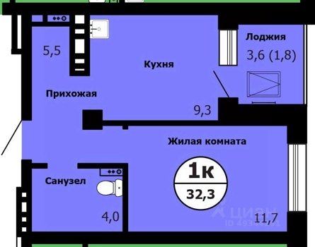 Площадь от 32.9 м2