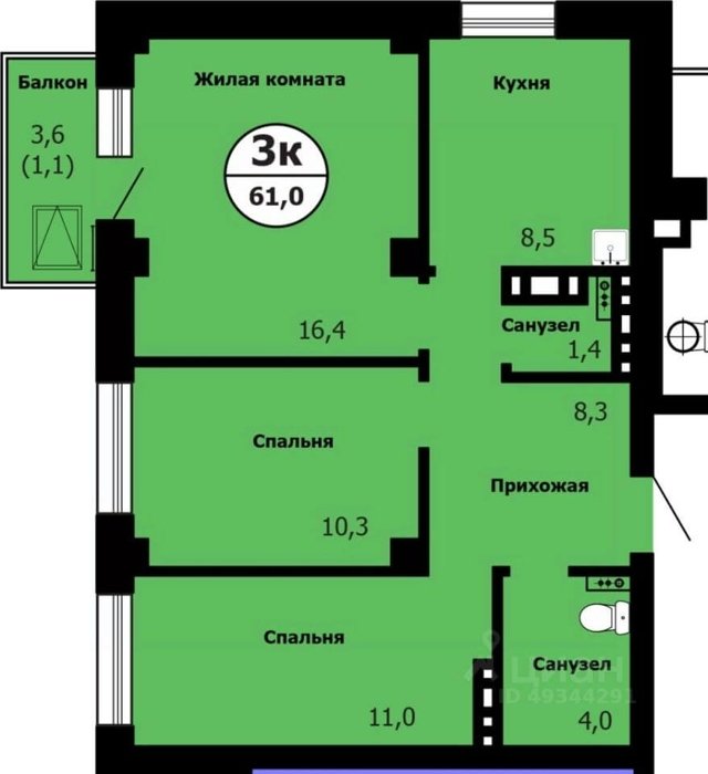 Площадь от 94.9 м2
