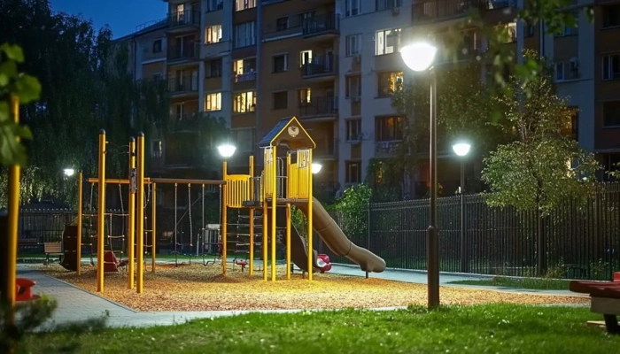 Освещение двора и фасада домов в нескольких уровнях.