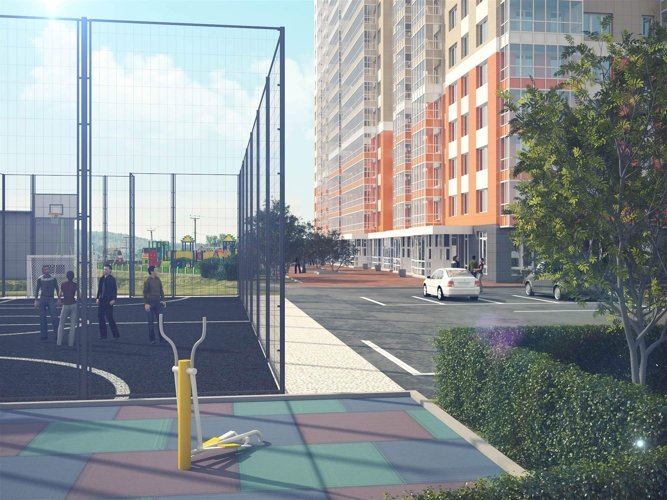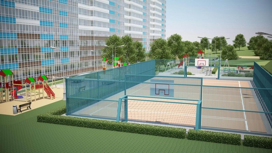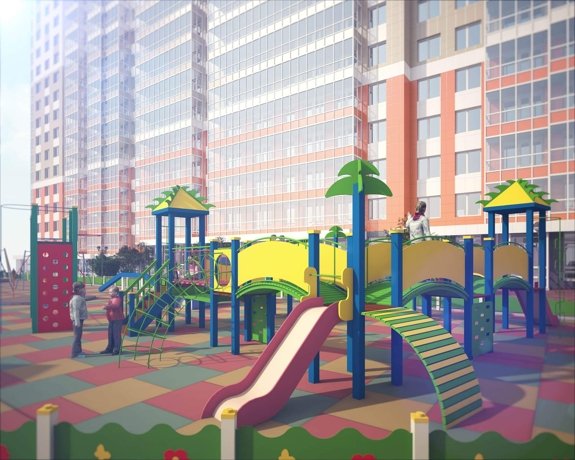 Детские площадки с резиновым покрытием и многофункциональными детскими городками. Спортивные площадки для футбола и баскетбола.