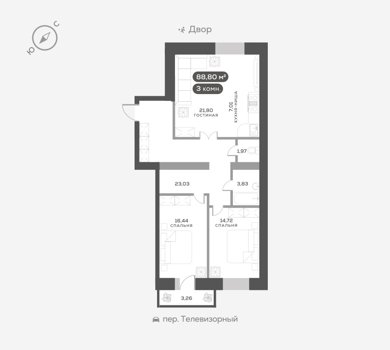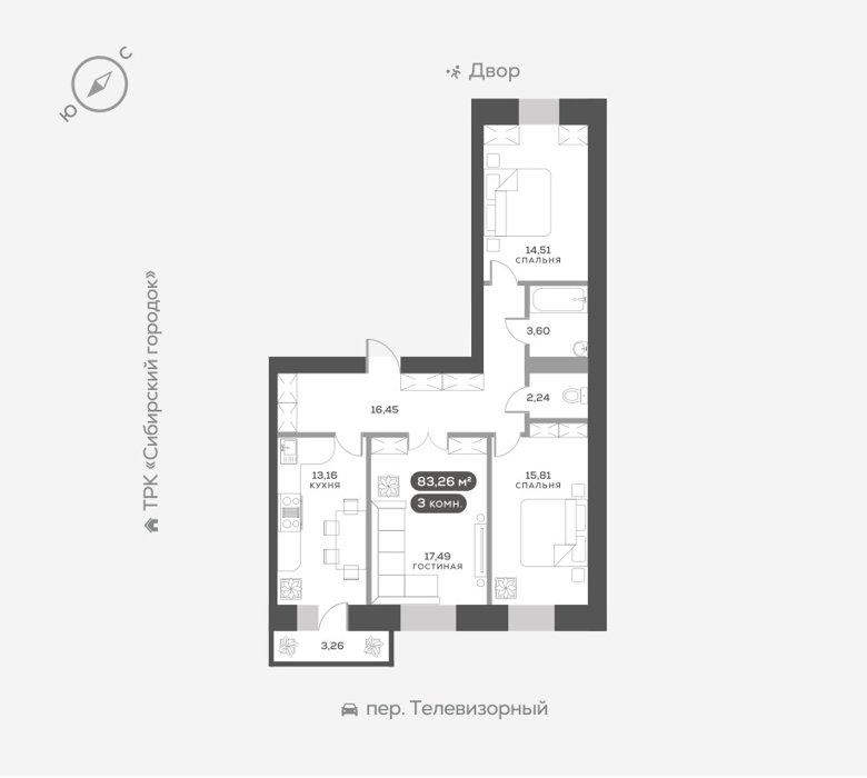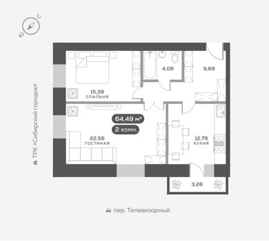 Новый сити-квартал строится в переулке Телевизорном в центре Октябрьского района недалеко от его администрации. Это место с развитой инфраструктурой. Отсюда можно легко и быстро уехать в Центр и на правый берег. Рядом огромный Торговый квартал для шоппинга и Гремячая грива для отдыха на природе. Студенты без проблем доберутся до корпусов СФУ, а люди верующие - до Успенского монастыря. Для спортивных и активных целых пять спорткомплексов поблизости!