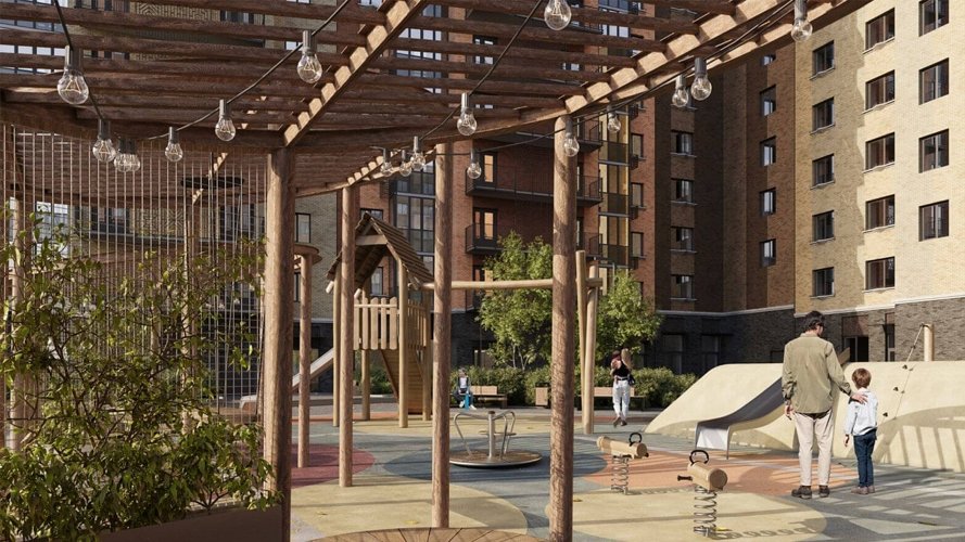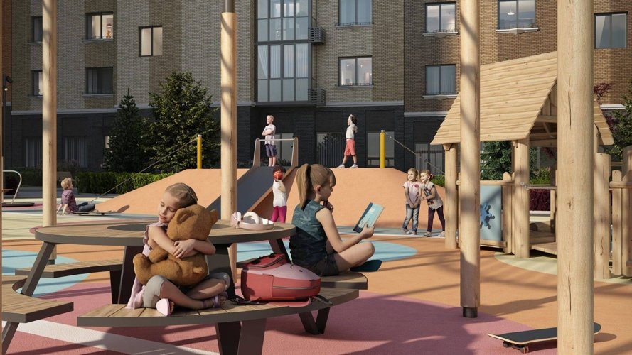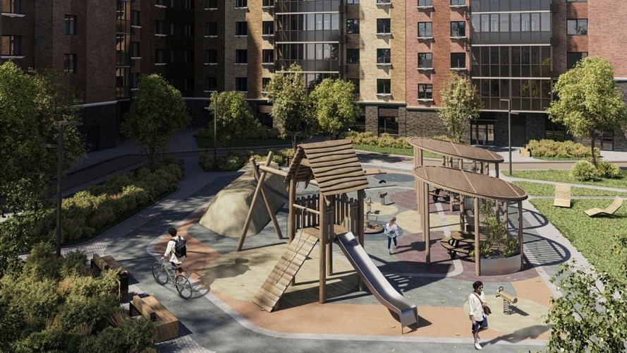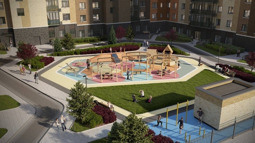 В жилом комплексе созданы комфортные условия для проживания. Для детей оборудована детская площадка. Любители активного образа жизни оценят спортивную площадку. Для безопасности предусмотрены понижающие площадки. Для автовладельцев предусмотрено 19 гостевых машиномест и общее количество парковочных мест составляет 134.