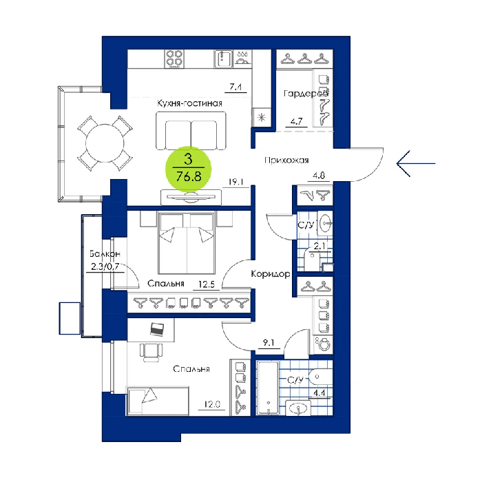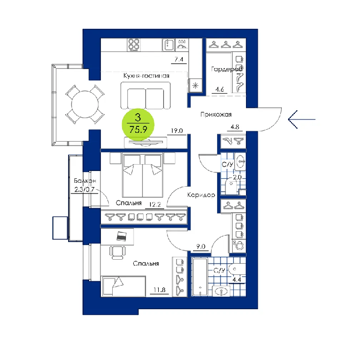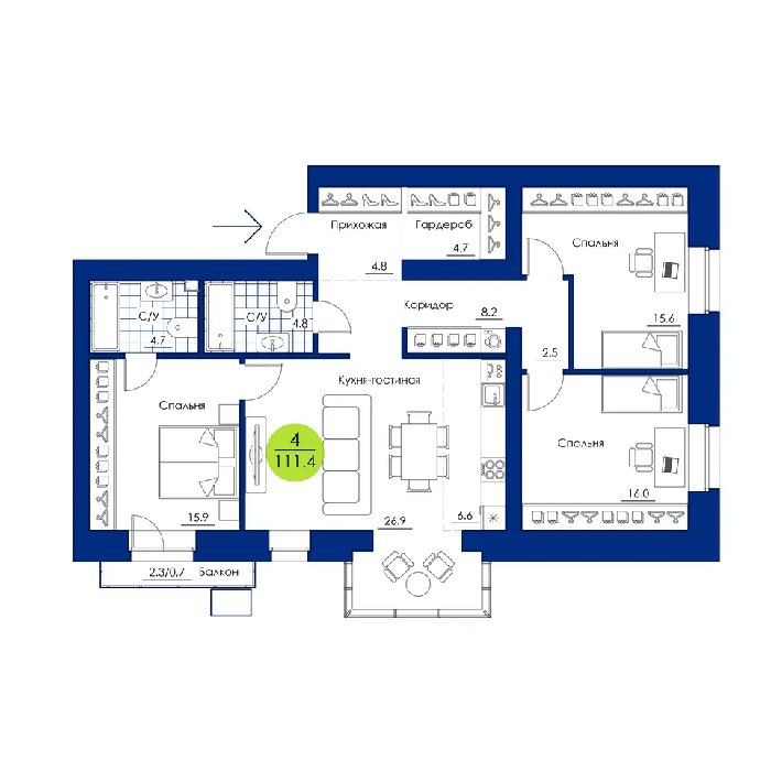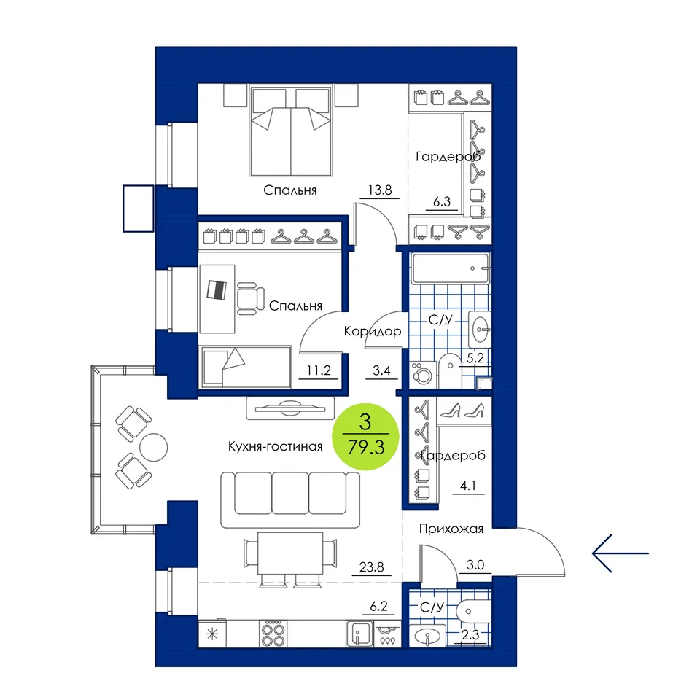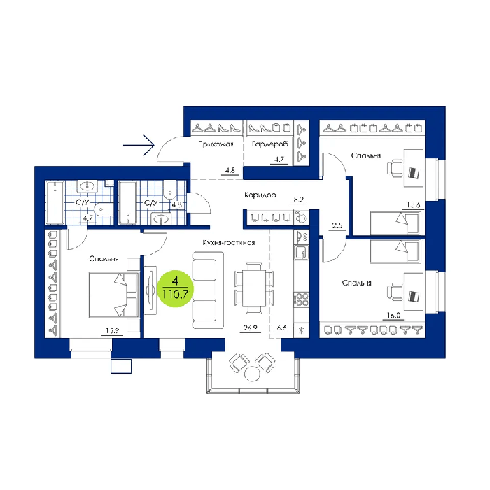 90% квартир – видовые, с окнами на приватный «Вита-парк», лес или благоустроенный двор. Самые солнечные квартиры смотрят на южную сторону. Выбирая эти планировки, вы гарантированно получите максимум солнца в вашем доме в любое время года.